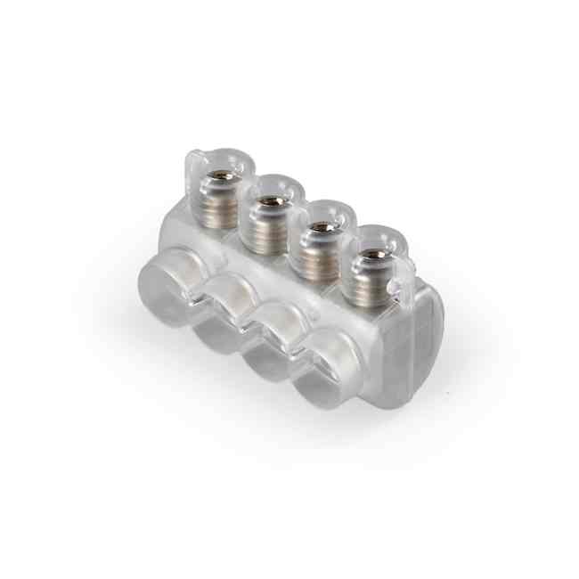Предназначен для соединения и разветвления 4-х жильных кабелей внутри стоек или щитов опор и мачт уличного освещения. Подходит для медных и алюминиевых проводов. При подключении проводов необходимо зачистить концы от изоляции. Контакт с зачищенным проводом обеспечивается прижимными винтами с внутренним шестигранником. На проводящие части нанесена контактная смазка. Корпус клеммника неразборный.