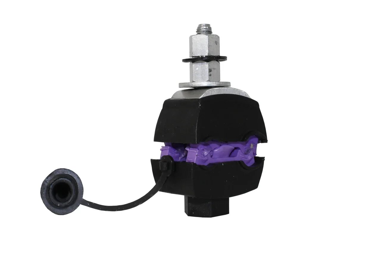 Предназначен для электрического соединения нулевой и токопроводящих жил провода типа СИП при ответвлениях от магистрали (медных или алюминиевых). Зажим создает надежный электрический контакт. Монтируется при температуре до -20 oС. Момент срыва пластиковой головки болта соответствует эквивалентному усилию, необходимому для создания электрического контакта проводов (магистрали, абонентского ответвления, освещения). На прокалывающие элементы нанесена контактная смазка. Зажим легко устанавливаются на провод, отсутствуют выпадающие компоненты. Болт изолирован от контактных деталей зажима. Возможность фиксации нижней части зажима ключом S 19 облегчает затяжку болтов. Испытания зажима на электрическую прочность и герметичность проводятся с погружением в воду при подаче напряжением 6 кВ в течение 1 минуты.