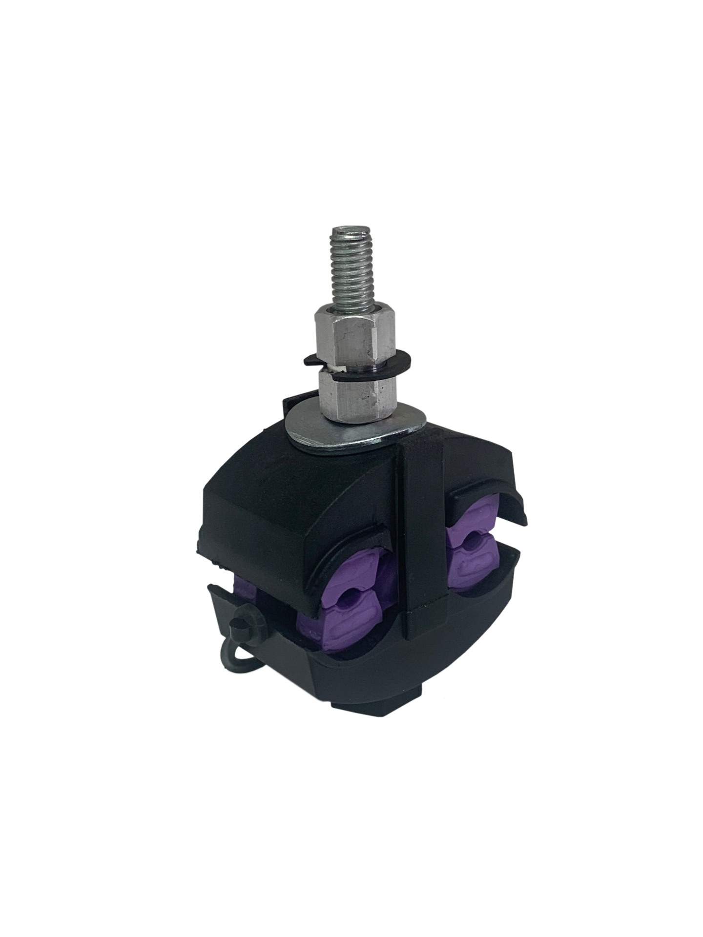 Предназначен для электрического соединения нулевой и токопроводящих жил СИП при ответвлениях от магистрали (медных или алюминиевых). Обеспечивает надежный электрический контакт. Температура монтажа до -20 oС. Зажим имеет металлическую срывную головку. Момент срыва головки болта соответствует эквивалентному усилию, необходимому для создания электрического контакта проводов (магистрали, абонентского ответвления, освещения). На прокалывающие элементы нанесена контактная смазка. Зажим легко устанавливаются на провод и не имеет выпадающих элекментов. Болт изолирован от контактных деталей зажима. Возможность фиксации нижней части зажима ключом S 19 облегчает затяжку болтов. Испытания зажима на электрическую прочность и герметичность проводятся с полным погружением в воду напряжением 6 кВ в течение 1 мин.