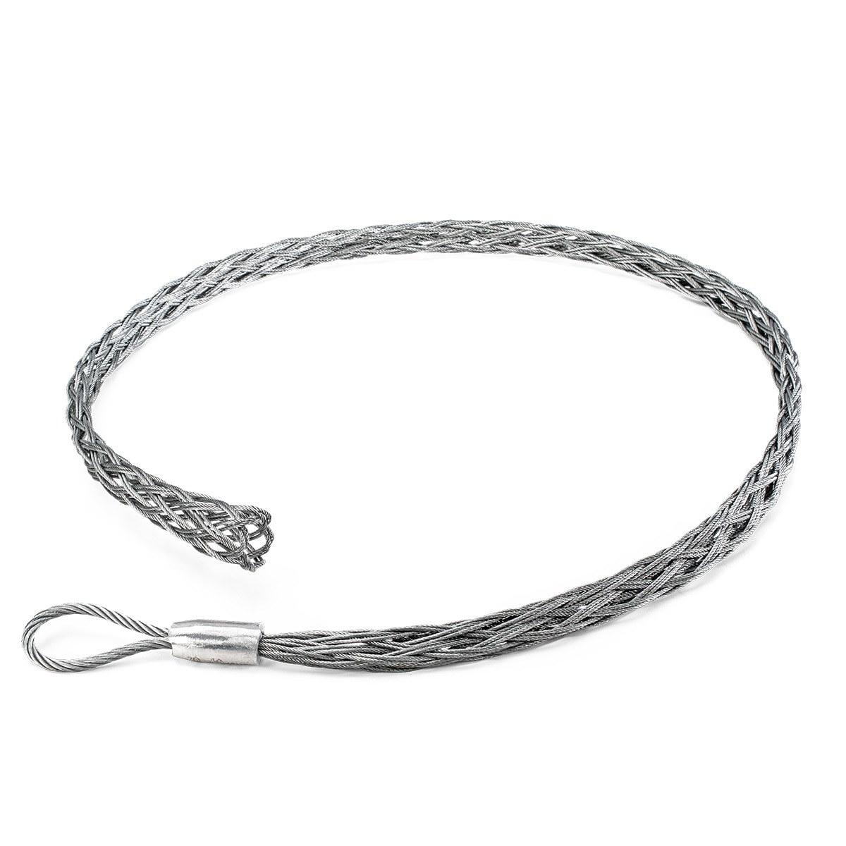 Соединяется с вертлюгом и тросом-лидером при раскатке. Изделие служит для захвата кабеля, несущей нейтрали. Также подойдет для скрутки СИП с торца при укладке и раскатке кабеля. Чулок изготовлен из оцинкованной стали. Однородное распределение нагрузки по всей площади захвата кабельного чулка препятствует повреждению изоляции и оболочки кабеля. Специальная конструкция ручного плетения обеспечивает необходимую эластичность. Гибкая конструкция легко проходит изгибы и повороты в кабельной конструкции. Материал монтажного чулка  - оцинкованная сталь