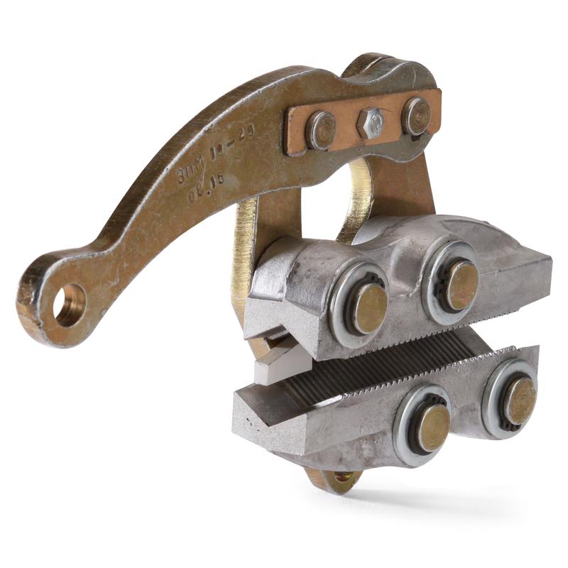 Применяются при регулировке стрелы провеса на линиях СИП путем захвата за несущую жилу. Могут использоваться при работах с оптоволоконным кабелем. Рычажное устройство преобразует усилие тяги в усилие захвата. Тяговые зажимы при работе не повреждают изоляцию провода