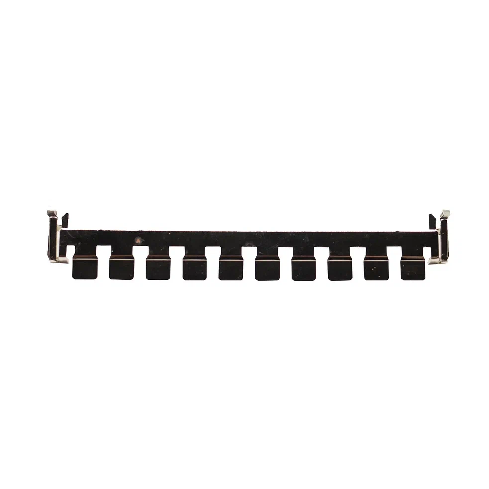 Используется в качестве шины заземления для однопарных штекеров защиты ComProtect. Заземление осуществляется между штекерами защиты ComProtect и каркасом стойки. При установке в кроссовое оборудование LSA-PROFIL необходима дополнительная установка скобок заземления.