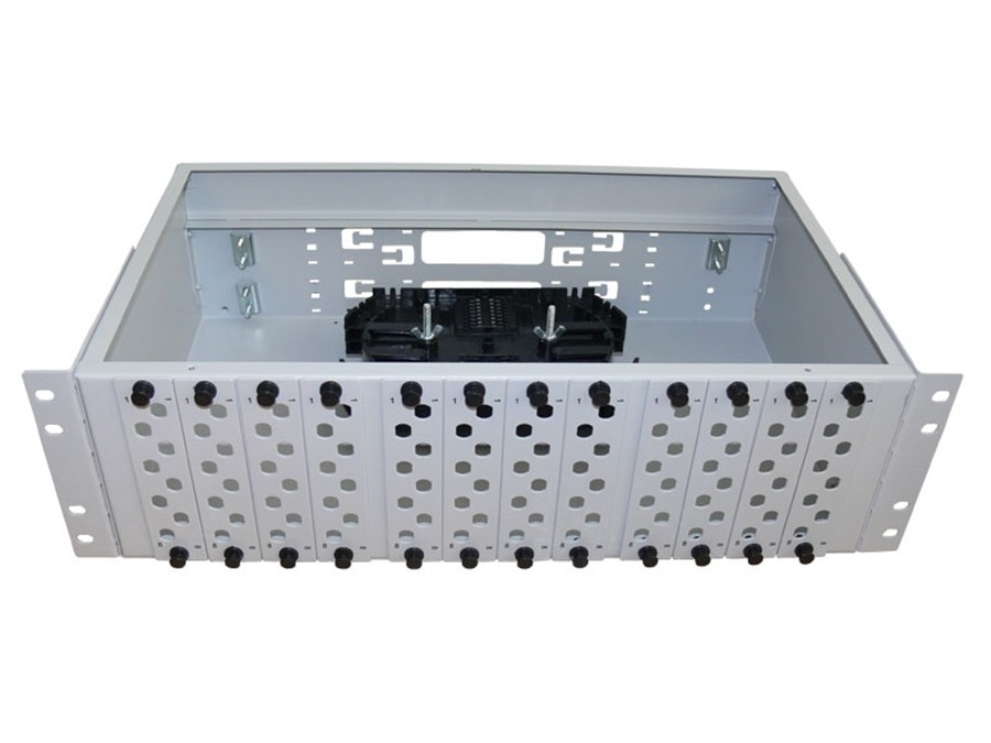 Оптический кросс представляет собой специальную коммутационную коробку, основное предназначение которой – защита мест сварки оптоволоконного кабеля. Кабель в оптическом кроссе дополнительно разваривается на розетки с применением гильз КДЗС и пигтейлов. После чего при помощи патчкордов осуществляется соединение оптического кросса и активного серверного оборудования.