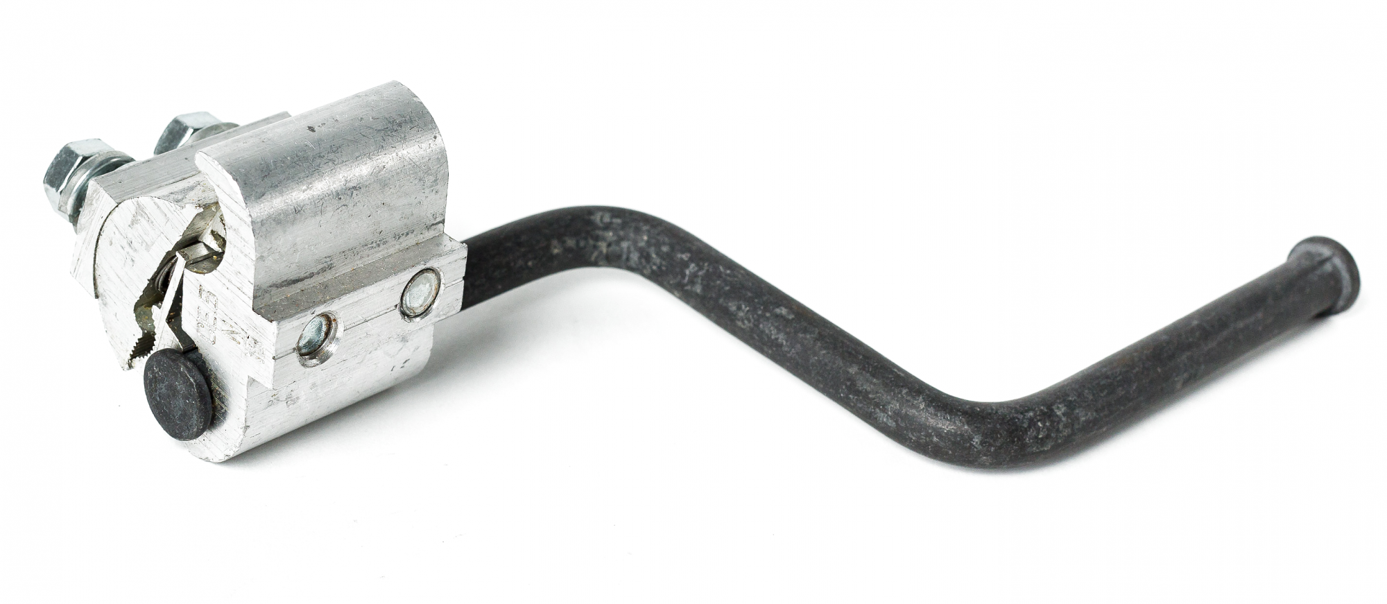 Используется на ВЛ с защищенными проводами для наложения защитного заземления. Предназначено для установки на провода СИП-3 на воздушных линиях электропередачи напряжением 6-35 кВ. Устройство адаптировано для подключения переносных штанг заземления. Состоит из прокалывающего зажима и рога, дважды сгибающегося под углом 90 градусов, с утолщением на конце.