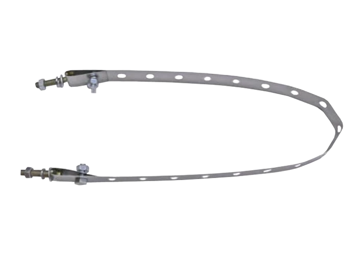 Предназначена для установки кронштейнов, устройств подвески муфт и намоточных устройств для подвесного ОК на железобетонные столбовые опоры диаметром от 150 до 400 мм.Лента с большим количеством круглых отверстий изготовлена из нержавеющей стали. При монтаже лента огибается вокруг опоры. Требуемая длина ленты регулируется путем загиба излишков по краям ленты. В торцевые отверстия, образовавшихся в результате загибов петель, вставляются резьбовые тяги, после чего петли фиксируются болтами. Тяги устанавливаются в крепёжные отверстия устройств подвески и с помощью затягивания гаек производится натяжение ленты.