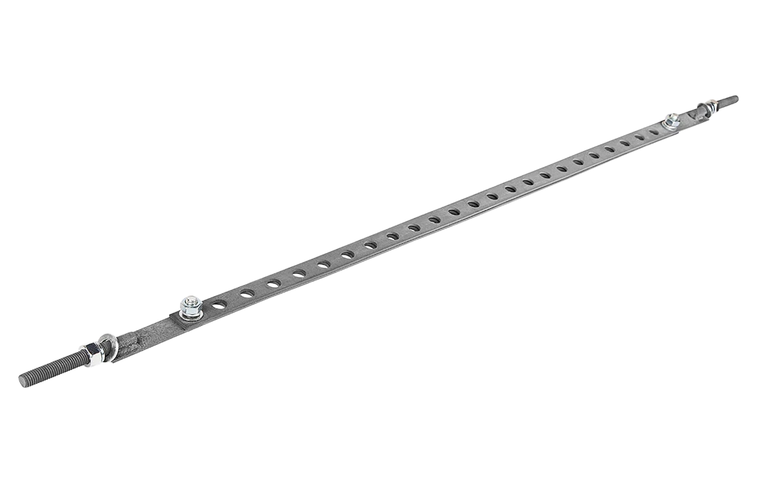 Хомут, состоящий из двух полос с большим количеством отверстий, собирается с помощью двух болтов и гаек и огибается вокруг железобетонной опоры. Величина зоны обхвата опоры регулируется с помощью перемещения полос хомута друг относительно друга. При необходимости излишние части отламываются. Хомуты рассчитаны на столбовые опоры диаметрами 150–650 мм.