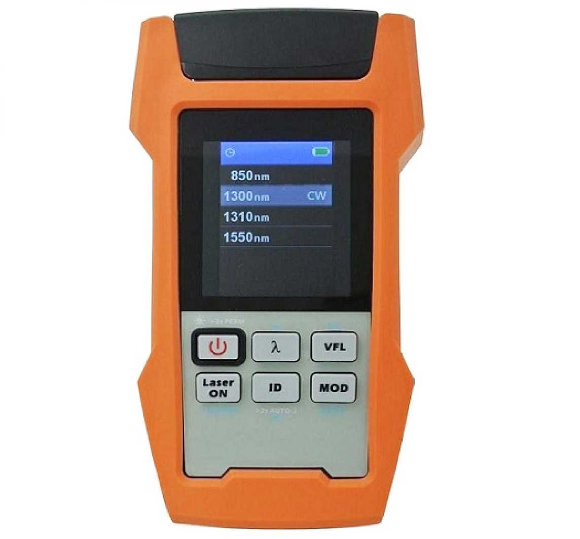 Оптический источник излучения с большим цветным экраном и режимом автоматического измерения на нескольких длинах волн. Источник способен излучать немодулированный и модулированный сигнал (270 Гц, 1 кГц, 2 кГц). Большой контрастный цветной дисплей позволяет легко считывать информацию и выполнять необходимые настройки. При использовании с измерителями мощности KIWI доступен режим автоматического измерения на нескольких длинах волн, значительно сократив время на измерения. Любой из приборов серии может быть оснащен визуальным детектором повреждений волокна (VFL). Возможна работа как от аккумуляторов, так и от батареек АА. Предусмотрена индикация уровня заряда батареи на экране. В приборе реализован режим энергосбережения – по истечении 10 минут бездействия прибор автоматически выключается.