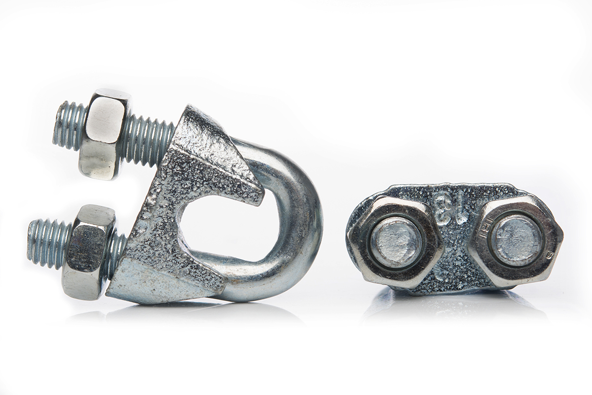 Изготовлен из углеродистой стали, покрытие оцинованное. Размер зажима подбирается по диаметру применяемого троса, т.е если диаметр троса - 3мм, то и зажим нужен размером 3. Крепежное соединение соединительный зажим для стального троса, соответствующий международному стандарту DIN741, служит для соединения канатов, тросов и цепей и другого такелажного инвентаря между собой с целью удлинения или чтобы создать петлю для монтажных соединений, используемых при такелажных работах. Метиз изготавливается из нержавеющей (легированной) стали А2 и А4, а также углеродистой стали с антикоррозийным цинковым покрытием или латуни.  Имеет форму «U». Платформа имеет выемку под трос. Канаты закрепляются при помощи съёмной скобы, фиксирующейся гайками (в комплекте). Типоразмеры от 3 до 40 миллиметр